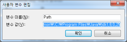 위 그림 처럼 ~에 대한 사용자 변수 에서 Path 클릭 편집을 누른 후