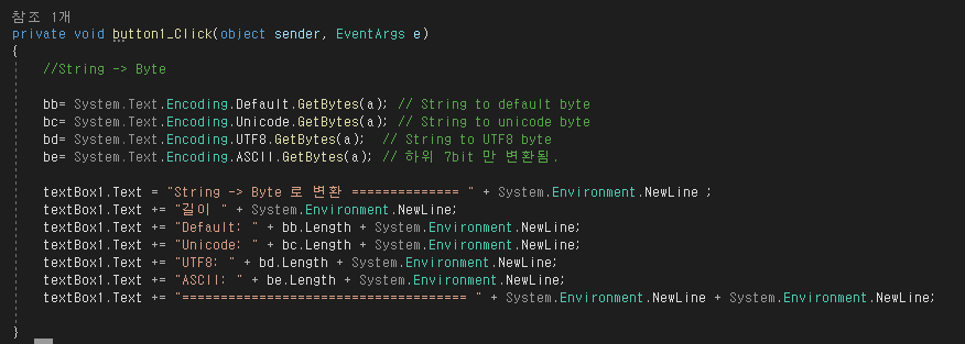 | [C#] String Byte Char 변환 예제 (0) | 2021.08.07 |
