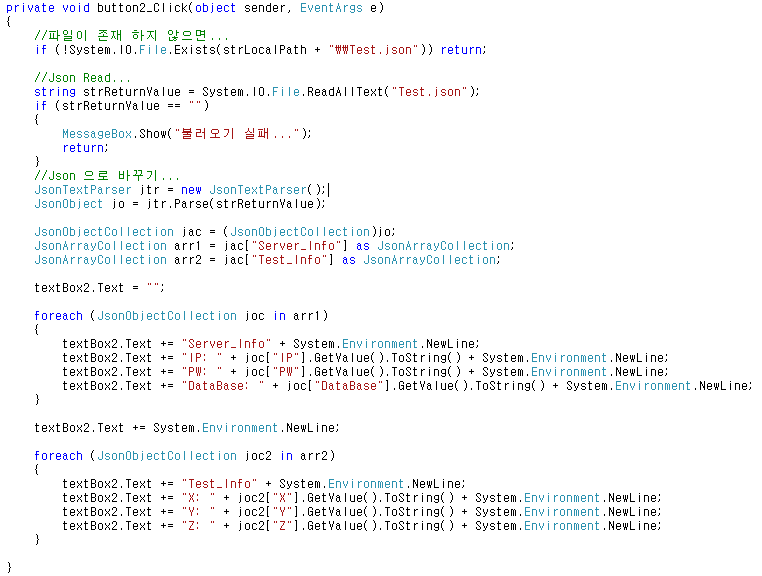 * C# Json 파일 읽기 쓰기 예제...