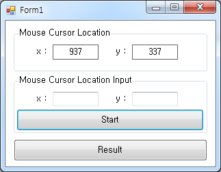 * C# API 를 이용한 마우스 커서 이동 및 마우스 버튼 클릭 이벤트 예제...