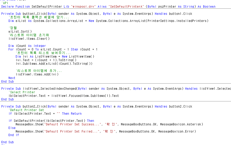 | [VBNET] [API] 제어판 기본 프린터(Default Printer) 변경 (0) | 2020.03.20 |
