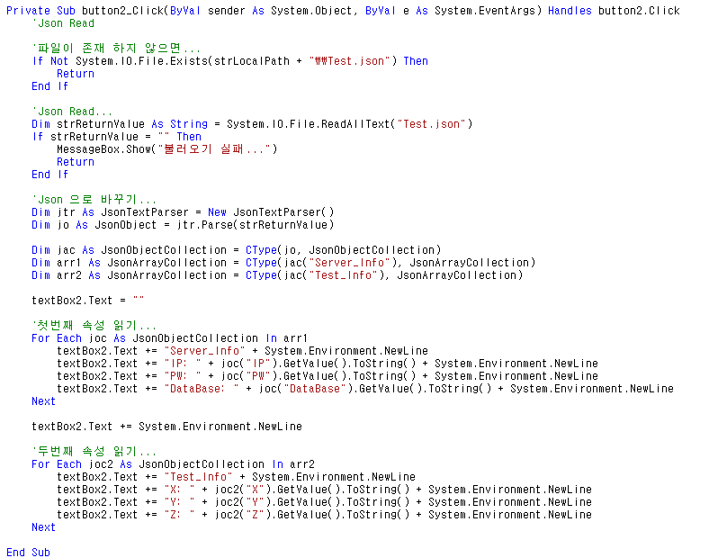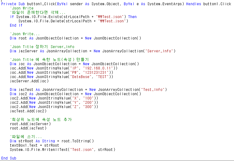 [VBNET] Json File Write & Read 예제...