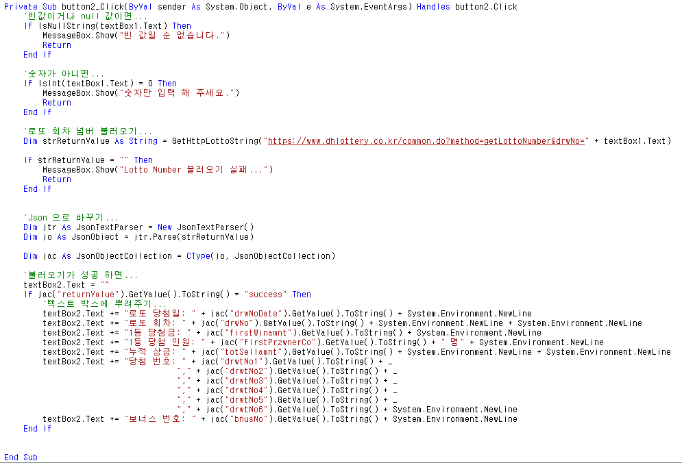 | [VBNET] 간단한 로또(Lotto) 당첨번호 확인 하기 (0) | 2021.06.17 |